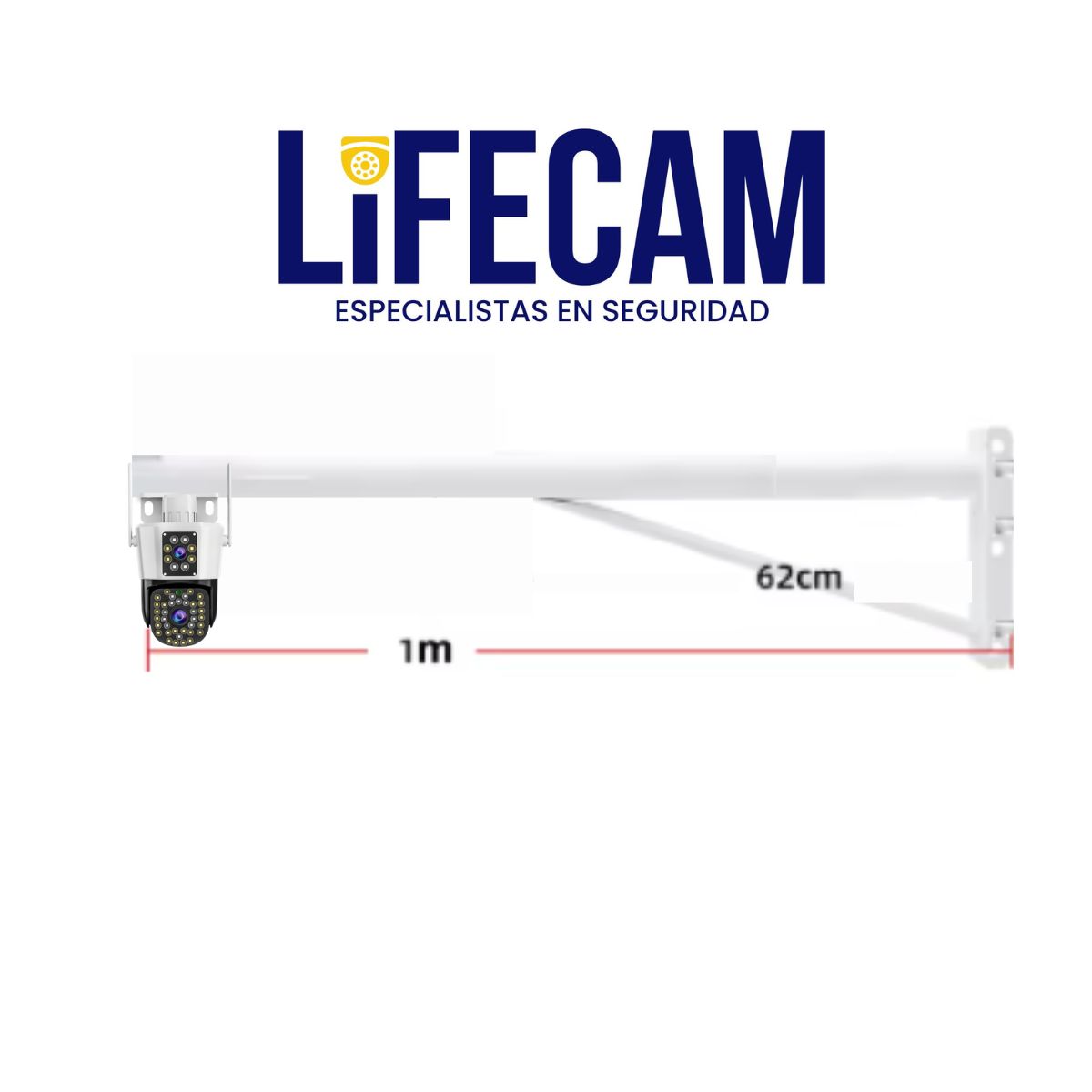 Este soporte de Brazo de 100 cm de extensión es fabricado para sistema de cámaras de seguridad al exterior, soporta hasta 3 cámaras (2 bullet y una IP), fabricada en hierro con un espesor de 2mm lo que resiste sin problemas hasta el viento muy fuerte. Con una capa de pintura blanca o negra, disponible para 3 métodos de montaje ya sea a pared, poste o esquina. El cableado se realiza por el interior de la estructura.